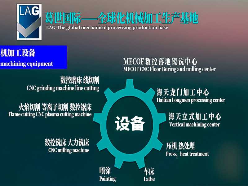 山東嘉意機械有限公司配置有國內(nèi)外前列的機械加工母機,其中意大利MECOF 360° 旋轉(zhuǎn)頭、5軸聯(lián)動落地鏜銑加工中 心3臺;配置360°側(cè)銑頭5軸龍門加工中 心6臺;立式加工中 心10余臺;配套的數(shù)控車床、銑床、磨床、線切割、大力銑床、火焰切割、等離子切割機、大型壓力機、正火爐等國際前列加工母機70余臺套。生產(chǎn)國際前列水準(zhǔn)的數(shù)控折彎機、剪板機、數(shù)控沖床等鈑金加工設(shè)備,打造葛世國際技術(shù)品牌。
